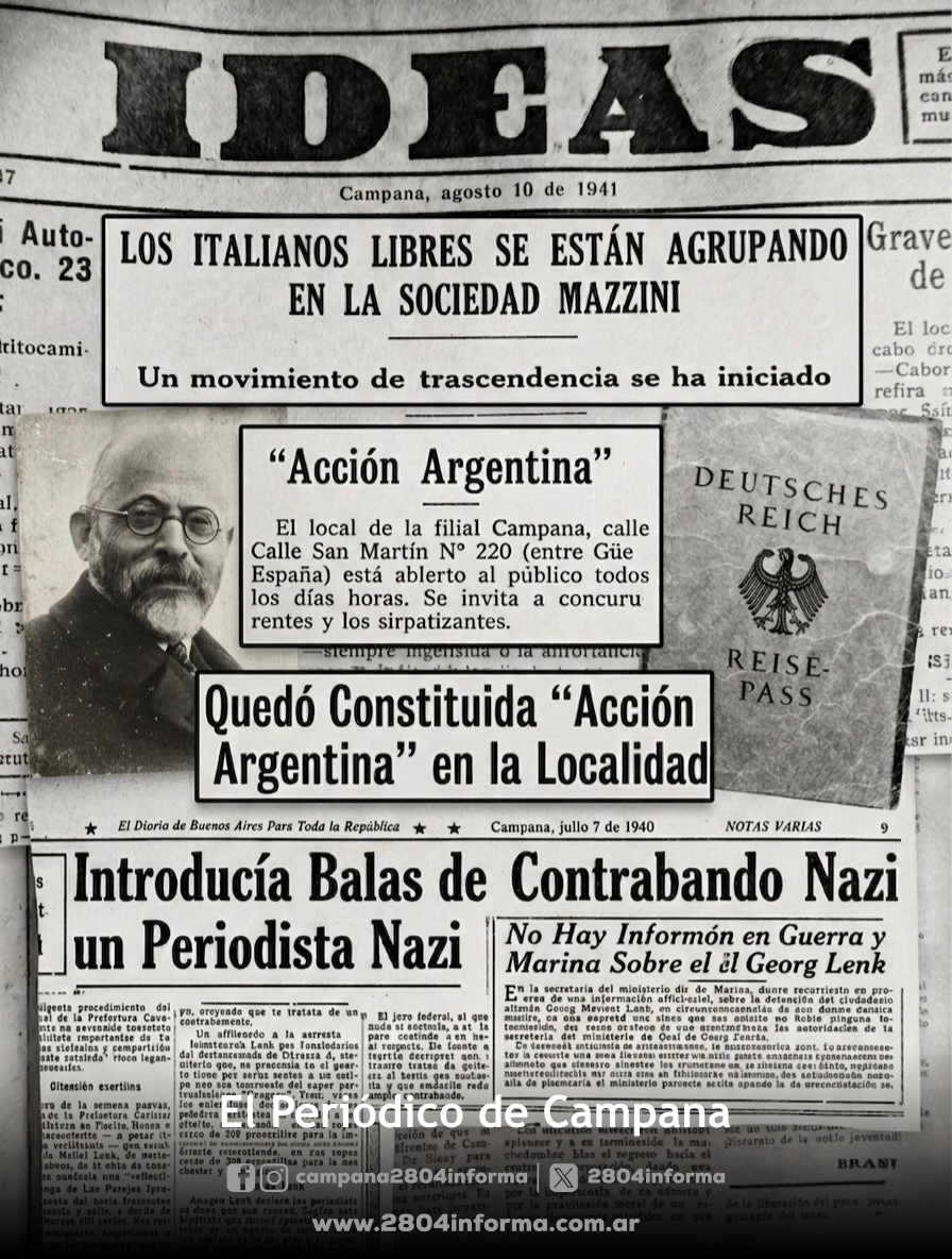 Entre operaciones encubiertas, propaganda ideológica y organización civil, Campana fue escenario de una trama poco conocida durante la Segunda Guerra Mundial, donde la presencia de redes vinculadas al nazismo encontró una respuesta activa de vecinos e instituciones. La reconstrucción histórica, basada en investigaciones del profesor Andrés Suardini y Juan Cruz Fernández, permite recuperar este capítulo local atravesado por tensiones globales y compromiso democrático.